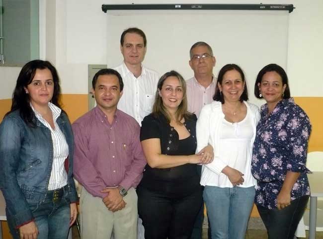 Ao fundo: Dr. Pedro Scarpi e Dr. Mauro Godinho. Da esquerda p/ direita: Mônica Cerqueira, Jailton Pedroso, Dr.ª Raquel Almeida, Dr.ª Lygia Bernardo e Enf.Cristiane Freitas.